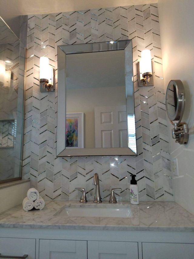 Browse the gallery below to take a look at some examples of the backsplash work we've done at Krogman Tile Co.! From traditional subway tile to herringbone pattern tile and more, you can come to us for the tile features you'd like installed in your kitchen or bathroom. Contact us today.
